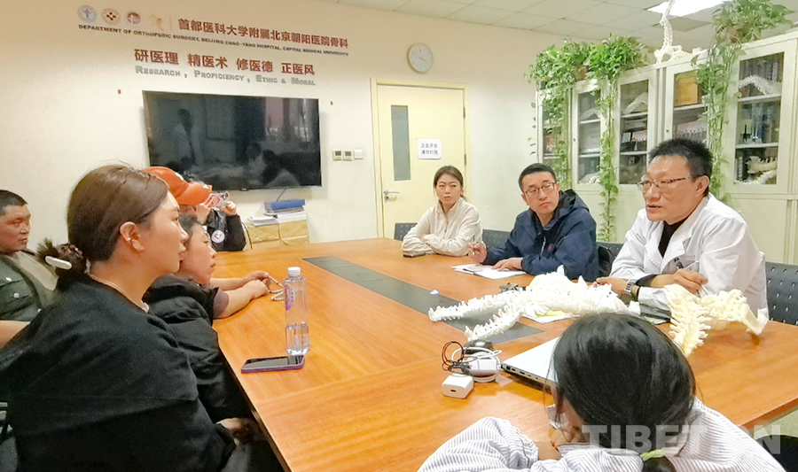 圖為來(lái)自四川省甘孜州石渠縣的脊柱側(cè)彎患兒在首都醫(yī)科大學(xué)附屬北京朝陽(yáng)醫(yī)院進(jìn)行檢查
