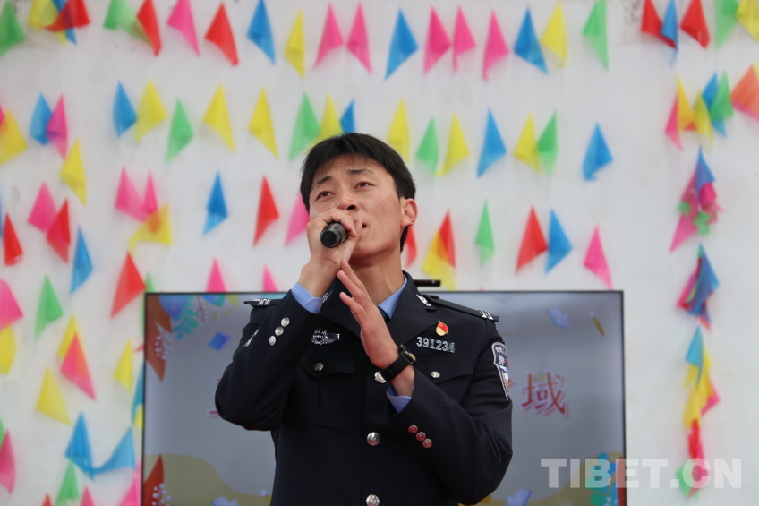 圖為錯(cuò)那邊境檢查站民警為晚會(huì)獻(xiàn)上藏語歌曲《囊謙》