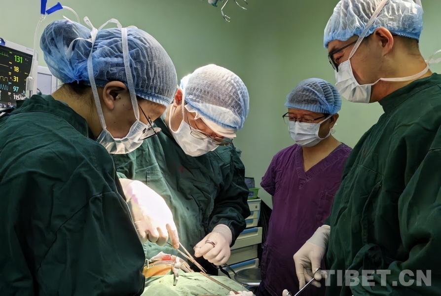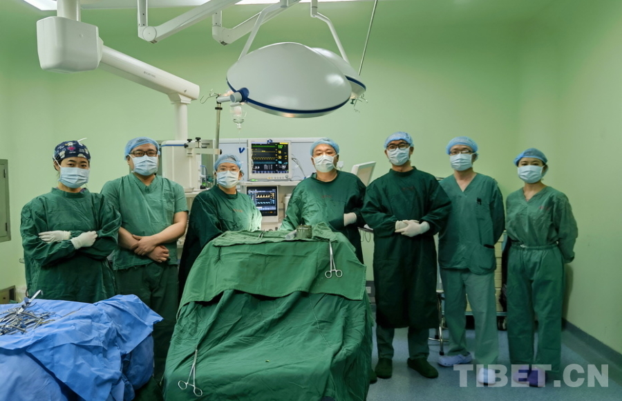 圖為火箭軍特色醫(yī)學(xué)中心口腔科主治醫(yī)師張曉然(左二)與阿壩州人民醫(yī)院口腔科團(tuán)隊(duì)合作,為腭裂患兒實(shí)施腭裂修補(bǔ)手術(shù),阿壩州人民醫(yī)院院長、主任醫(yī)師楊林(右二)前來觀摩手術(shù)