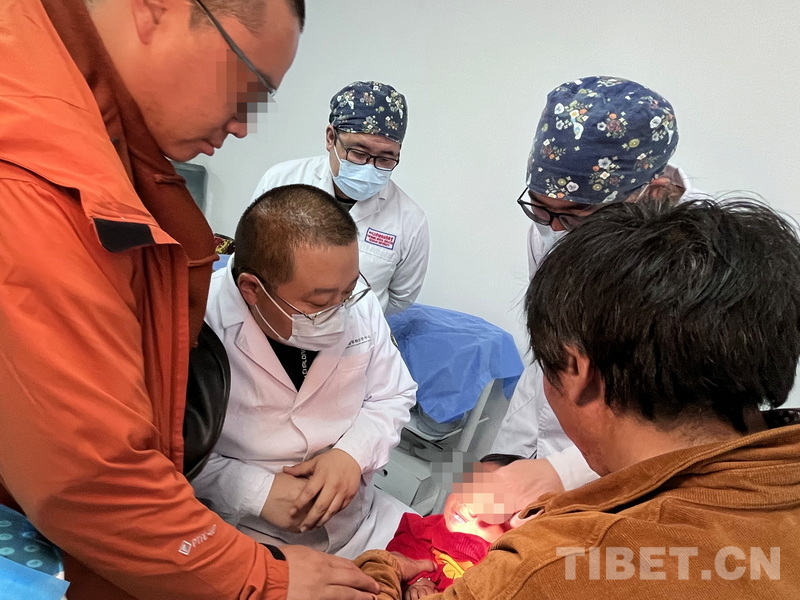 圖為火箭軍特色醫(yī)學(xué)中心口腔科主治醫(yī)師張曉然(左二)與阿壩州人民醫(yī)院口腔科團(tuán)隊(duì)正在為腭裂患兒會(huì)診