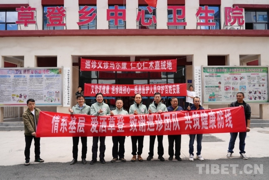 圖為草登鄉(xiāng)義診點的醫(yī)療專家們合影 攝影:喇應(yīng)強