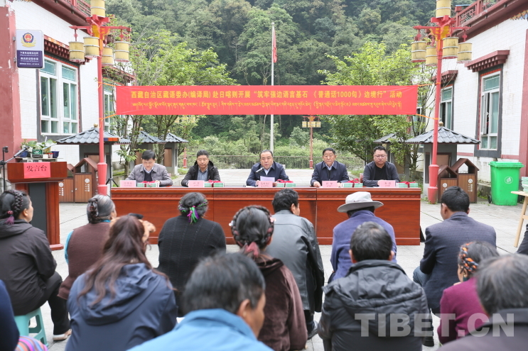 活動期間,西藏自治區(qū)藏語委辦(編譯局)有關(guān)領(lǐng)導(dǎo)向參加活動的干部群眾贈送了《普通話1000句》漢藏對照版書籍?;顒蝇F(xiàn)場,還為基層群眾上了一堂學(xué)習(xí)國家通用語言文字的示范課。