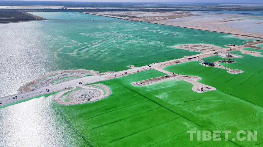 如今的察爾汗鹽湖,遠(yuǎn)處的湖面上矗立著現(xiàn)代化大型采鹽設(shè)備作業(yè),鹽砣似雪山堆疊;湖畔,湖水翠綠,鹽花雪白,美麗的風(fēng)光吸引無數(shù)游人打卡拍照,形成一幅開發(fā)與保護(hù)并重、工業(yè)與生態(tài)并存的和諧畫卷。