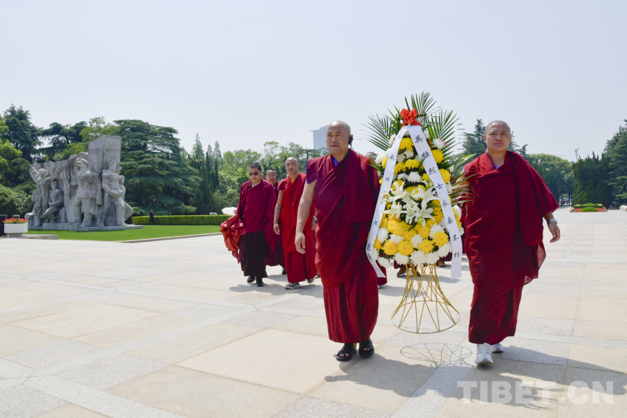 圖為在龍華烈士陵園西藏佛學(xué)院師生為革命先烈敬獻(xiàn)花籃 攝影:趙振宇