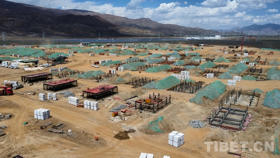 圖為日喀則市昂仁縣卡嘎鎮(zhèn)搬遷至拉孜縣查務(wù)鄉(xiāng)那布西村東部的災(zāi)后重建現(xiàn)場