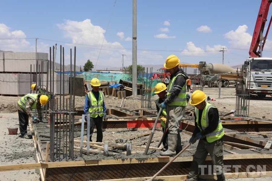 圖為日喀則市拉孜縣錫欽鄉(xiāng)崗西村災(zāi)后重建現(xiàn)場