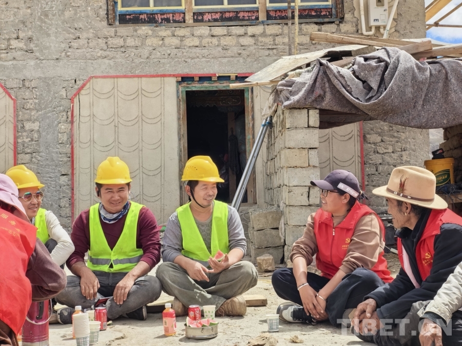在白瑪村,黨員們自發(fā)組成志愿服務(wù)隊(duì),用實(shí)際行動(dòng)詮釋“中華民族一家親”。他們將精心熬制的酥油茶和洗凈切好的西瓜,送到了工地。工人們與村民們席地而坐,一邊品著酥油茶、吃著清甜西瓜,一邊親切地拉著家常。村支書次多動(dòng)情地說:“施工隊(duì)千里迢迢來幫我們重建家園,送點(diǎn)茶水、西瓜表達(dá)心意,是應(yīng)該的!”