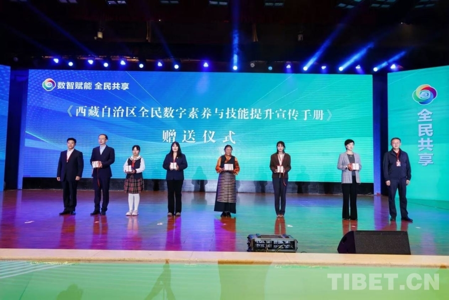 圖為活動現(xiàn)場向社會各界代表贈送《西藏自治區(qū)全民數(shù)字素養(yǎng)與技能提升宣傳手冊》