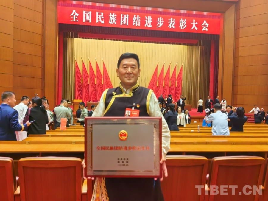 圖為邊巴在全國民族團結(jié)進步表彰大會現(xiàn)場 受訪者供圖