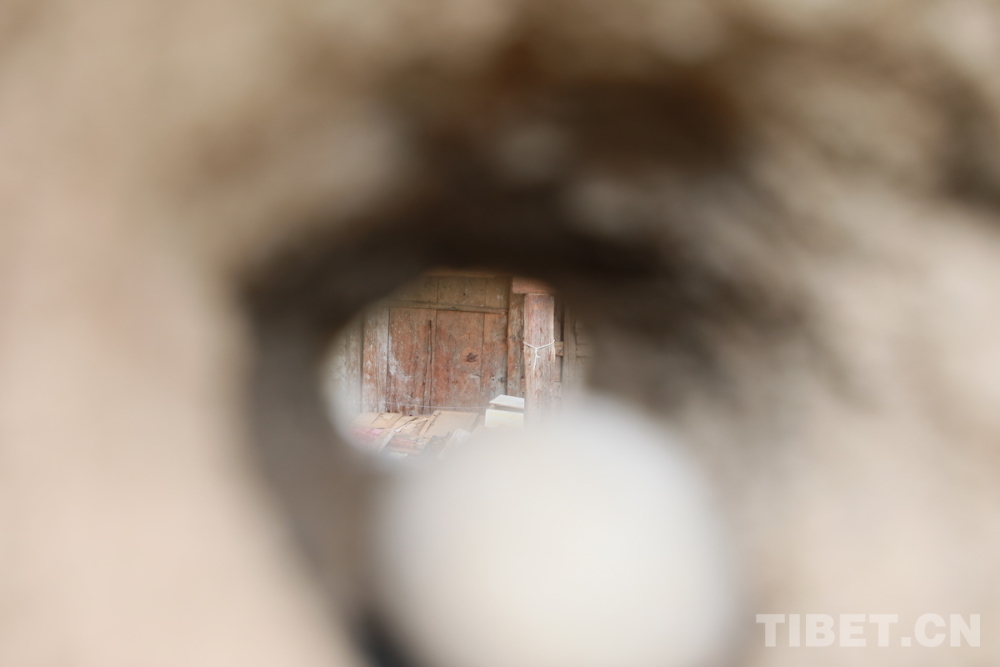 圖為位于四川省甘孜州鄉(xiāng)城縣青德鎮(zhèn)布機(jī)村的宗薩木府的古老夯土女兒墻上存留著正對(duì)大門(mén)的射擊孔,這樣的射擊孔還有多處,是當(dāng)年這座高大建筑的安保系統(tǒng) 攝影:劉莉