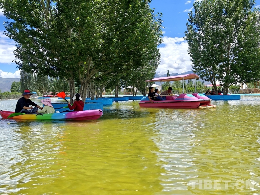 圖為市民在扎囊縣西普休閑觀光園休閑劃船