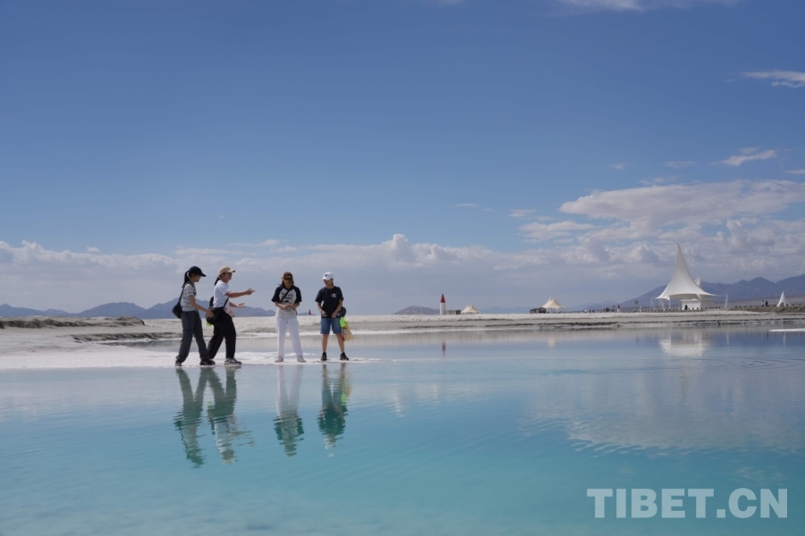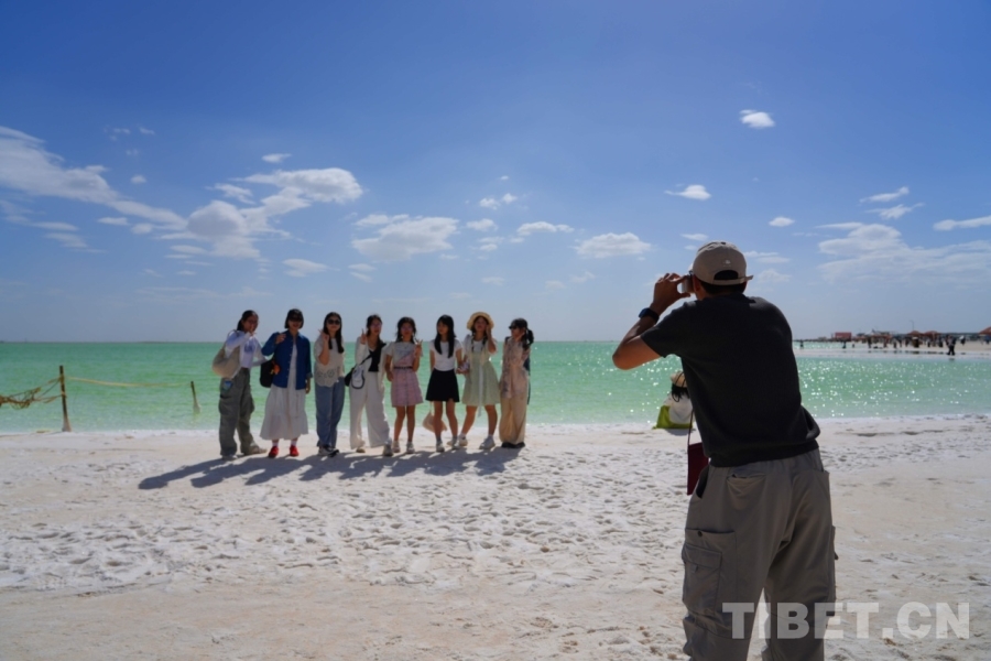在海西蒙古族藏族自治州格爾木市,海拔2670米的察爾汗鹽湖,翠綠之美令人震撼,風(fēng)起波動(dòng),湖面如碎鉆鋪就的星河;天然形成的鹽花形態(tài)各異宛如珊瑚叢生,在陽(yáng)光下,閃耀著璀璨的光芒;浮在鹵水上的“萬(wàn)丈鹽橋”延伸至天際,橫跨湖面,還有周邊的現(xiàn)代化采鹽船,輸鹵管道,車(chē)來(lái)車(chē)往,工業(yè)設(shè)施與自然景觀形成強(qiáng)烈對(duì)比。來(lái)自妙法寺劉金龍中學(xué)三位女生欣賞著美景,也紛紛討論這次令人驚嘆的“自然課堂”。鐘澄情同學(xué)不自禁感慨:“這里跟網(wǎng)上宣傳的一樣美!就像是上帝打翻的蘋(píng)果汁?!痹袂缤瑢W(xué)驚嘆道:“曾經(jīng)我只聽(tīng)說(shuō)過(guò)茶卡鹽湖,來(lái)到這里才知道察爾汗鹽湖是中國(guó)最大、世界第二大的鹽湖,面積相當(dāng)于56個(gè)茶卡鹽湖,鹽儲(chǔ)量可以讓全球80億人吃上兩千年?!倍S馨月同學(xué)更加震撼這里工業(yè)與自然相互交融的獨(dú)特魅力,直呼這是一座真正的“寶庫(kù)”!