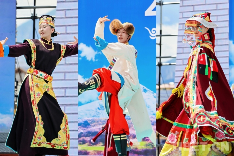圖為比賽現(xiàn)場(chǎng)西藏不同地市的精美服飾展示