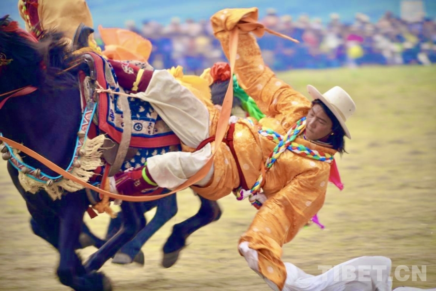 圖為騎手表演拾哈達(dá)