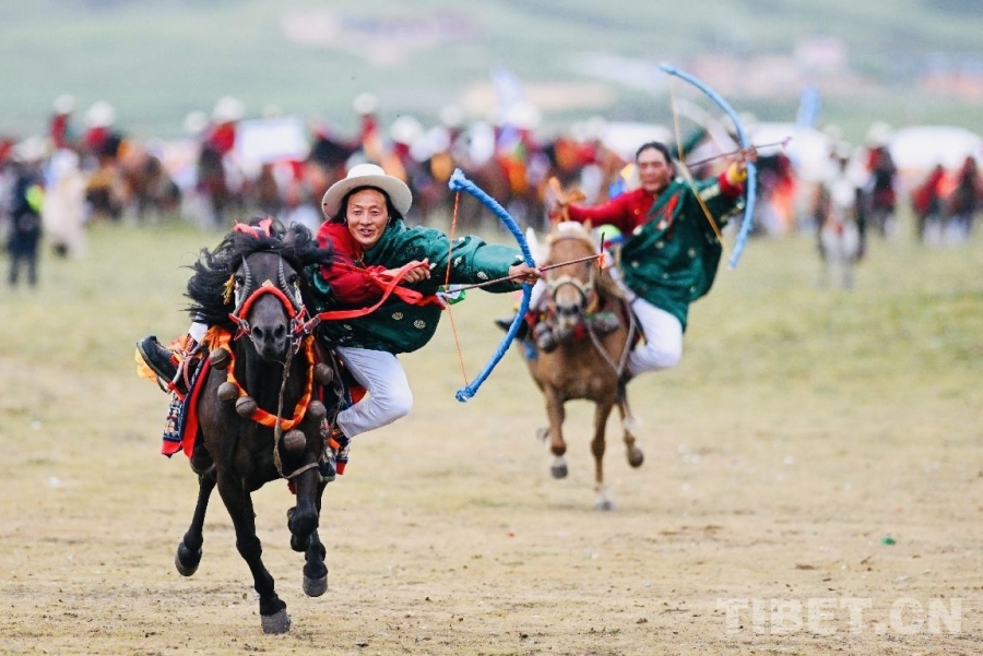 當(dāng)天下午,速度與激情仍在八一賽馬場(chǎng)不斷上演。三項(xiàng)10000米速度耐力賽迎來(lái)最終角逐。大馬組如離弦之箭,破空而出;中馬組疾行如風(fēng),勢(shì)不可擋;小馬組氣勢(shì)如虹,奮蹄爭(zhēng)先。每一次驚心動(dòng)魄的彎道超越,都讓觀眾席爆發(fā)出海嘯般的助威,廣袤的草原仿佛瞬間幻化成一片沸騰的競(jìng)技海洋。與此同時(shí),騎射邀請(qǐng)賽也在多旺塘精彩上演。馬蹄翻飛間,騎手張弓搭箭,弓弦響處,箭矢流星般釘入靶垛?!斑@不僅比射術(shù),更比人馬合一的默契?!币晃簧碇鴤鹘y(tǒng)服飾的本地牧民向身旁的游客解釋,眼中流露出無(wú)法掩飾的自豪。