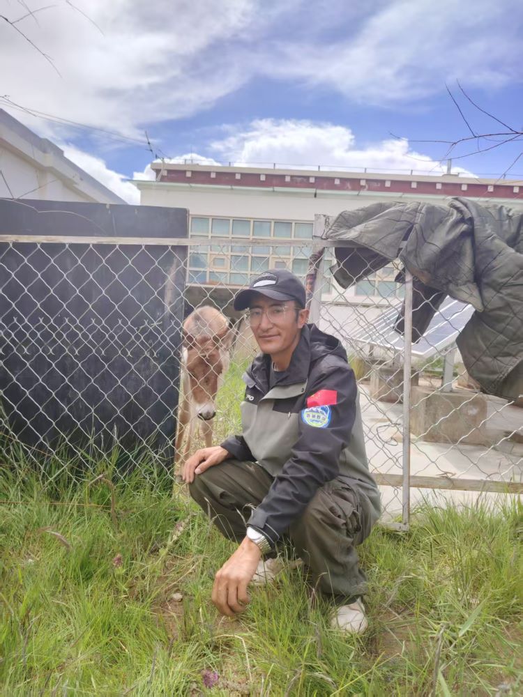 圖為被救助的小藏野驢與羅布玉杰管護(hù)站工作人員扎西羅布 攝影:王東