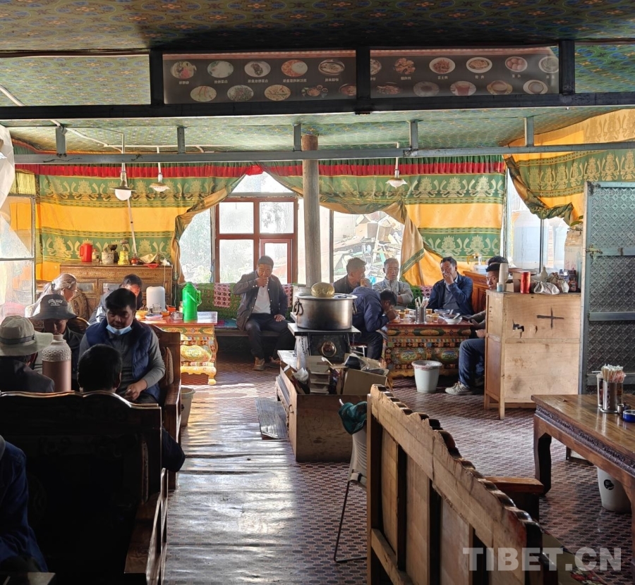 43歲的拉姆和家人共同經(jīng)營著一家藏式茶館,主要供應(yīng)甜茶、肉餅、藏面、炸土豆、砂鍋餃子等深受當?shù)厝罕娤矏鄣拿朗场@愤€在茶館對面開設(shè)了一間便民小賣部,貨架上整齊擺放著各類生活必需品,成為村民們?nèi)粘2少I的溫馨驛站。