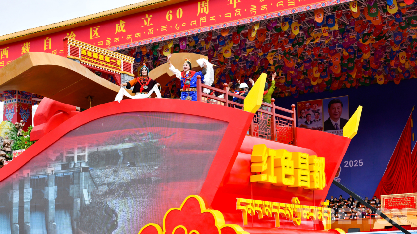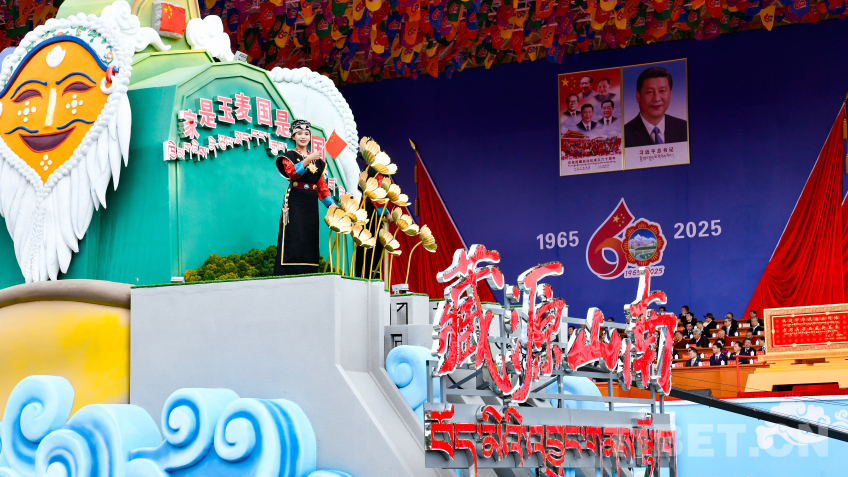 “走向未來(lái)”彩車,整體呈現(xiàn)數(shù)字“60”字樣,車身造型融入華表、紅色飄帶、中國(guó)結(jié)等元素,彰顯了西藏各族干部群眾奮進(jìn)新征程、建設(shè)團(tuán)結(jié)富裕文明和諧美麗的社會(huì)主義現(xiàn)代化新西藏的信心和決心。(中國(guó)西藏網(wǎng) 記者/王淑 趙振宇 德吉卓瑪 次旦拉姆 旦曲 賈華加 趙釗 姚浩然 劉莉 邊子捷 馮重霖 楊眉笑)