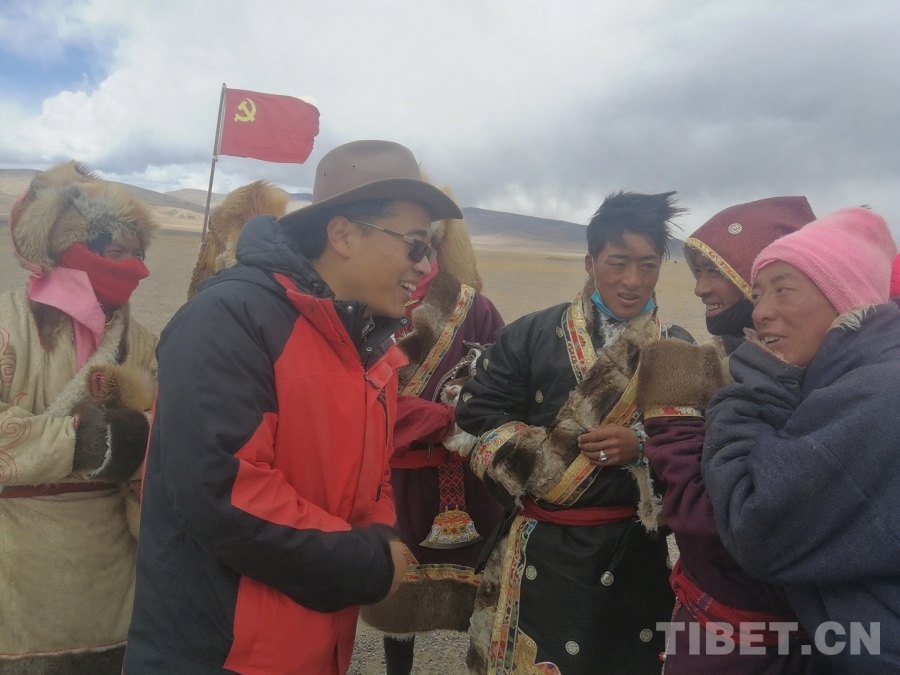 韓軍峰在阿里革吉縣與牧民群眾在一起 受訪者供圖