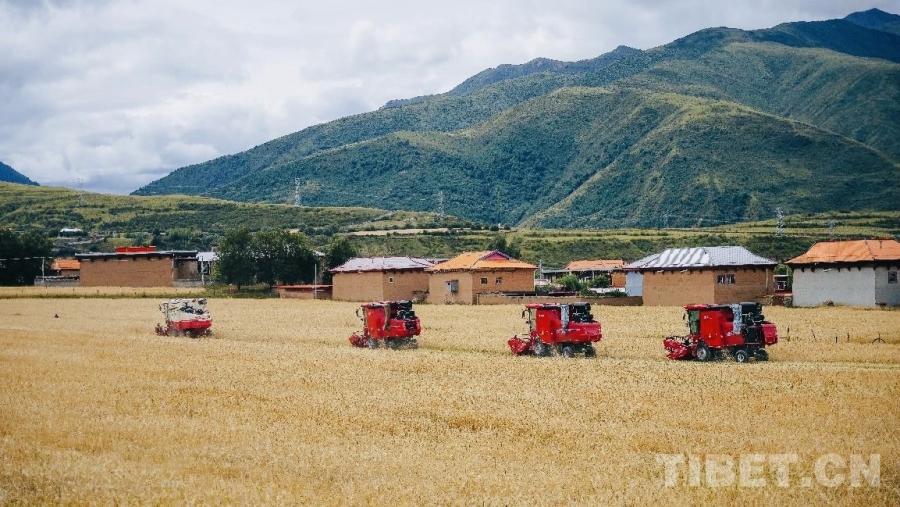 圖為機(jī)械化青稞收割現(xiàn)場(chǎng)
