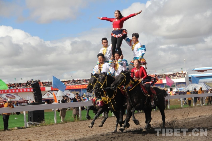 圖為那曲恰青賽馬節(jié)開幕式馬術(shù)表演 攝影:趙釗