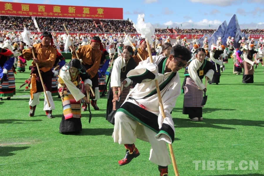 圖為那曲恰青賽馬節(jié)開幕式歌舞表演 攝影:趙釗