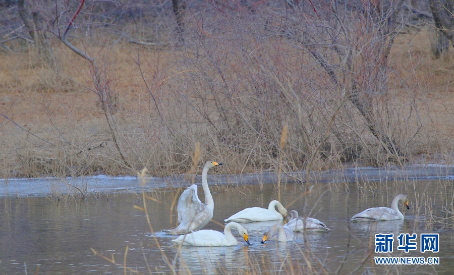 一群天鵝在千姿湖嬉戲。新華網(wǎng) 宋忠勇 攝