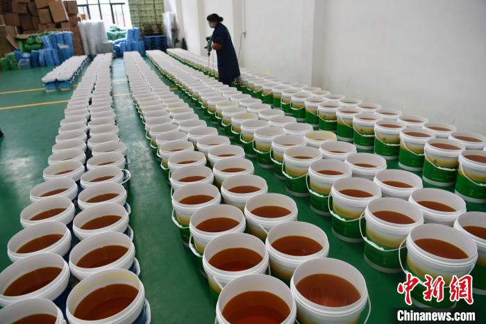 生產(chǎn)車間消毒完畢、準(zhǔn)備好疫情防控物資,位于四川金堂“成都—阿壩工業(yè)集中發(fā)展區(qū)”(以下簡(jiǎn)稱成阿工業(yè)園區(qū))內(nèi)的四川圣祥佛油新材料科技有限公司已正式復(fù)工。藏歷新年期間,酥油燈訂單大漲,今年36歲的藏族漢子足巴孝正戴著口罩,和同事加班加點(diǎn)完成訂單。