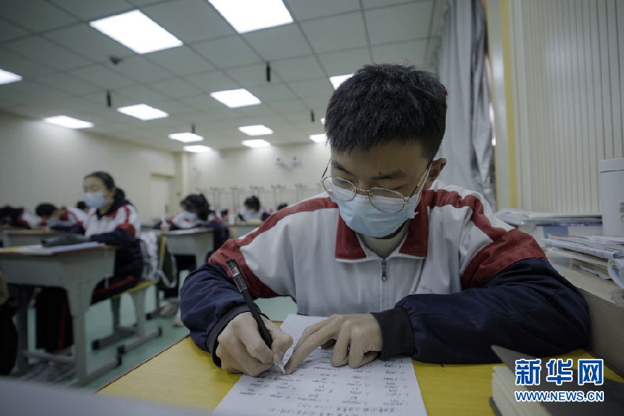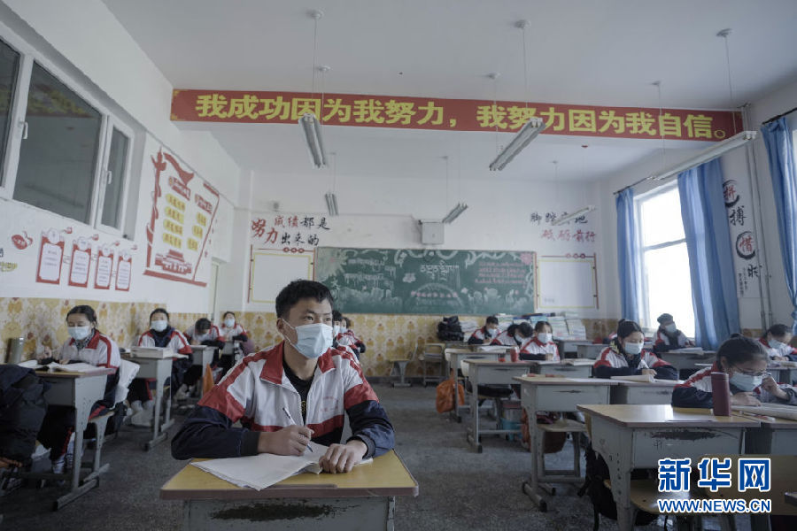 3月14日,海北州第一高級中學高三年級學生在教室內(nèi)上課。新華社 吳剛 攝