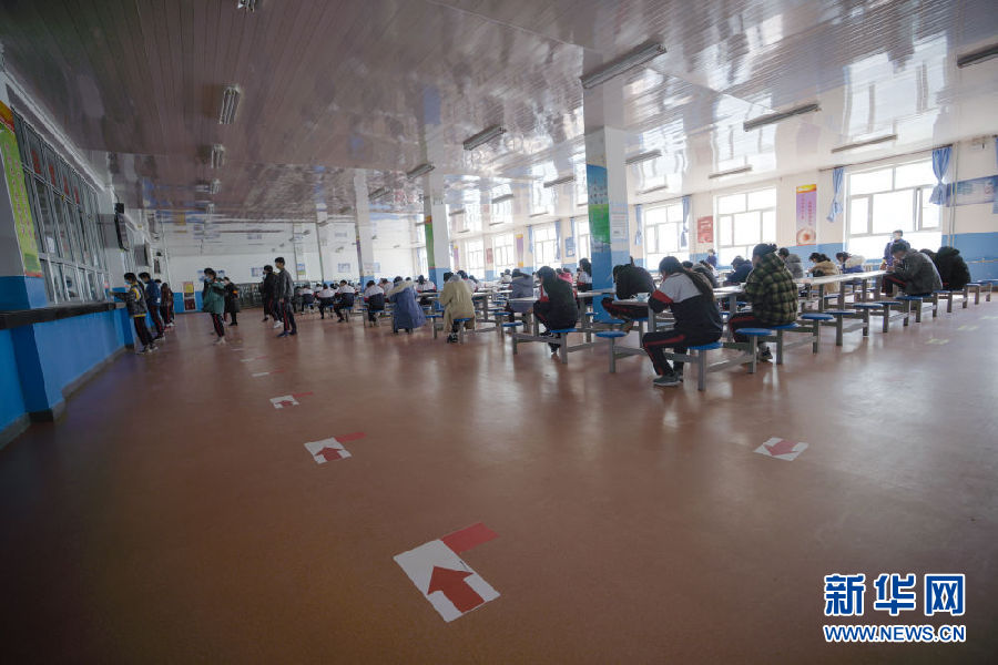 3月14日,海北州第一高級中學學生在餐廳分桌就餐。新華社 吳剛 攝