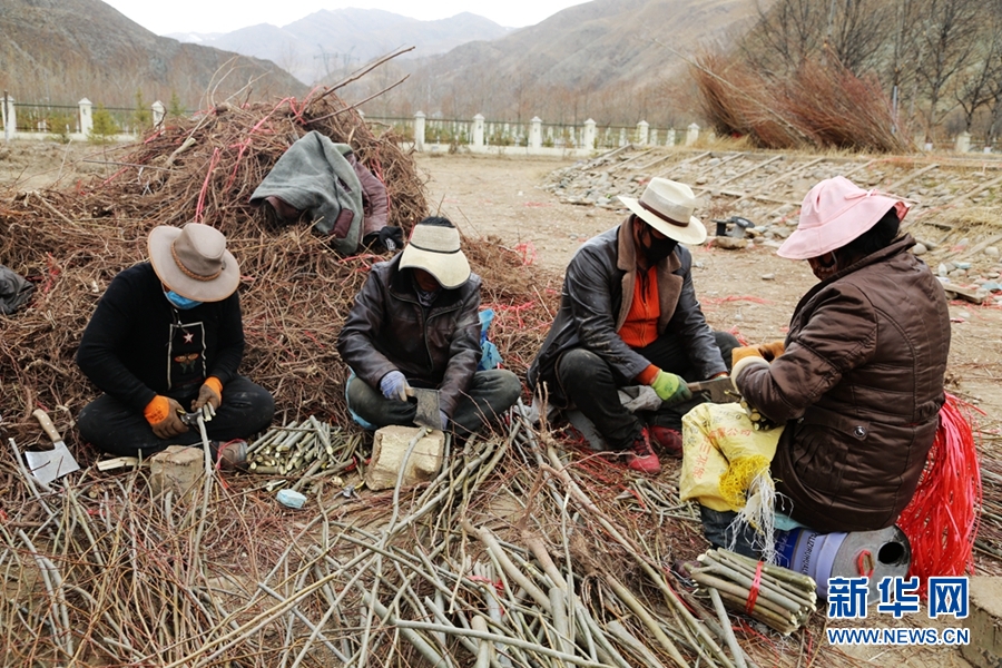 工作人員正在進(jìn)行扦插育苗。新華網(wǎng) 卡婭梅朵 攝