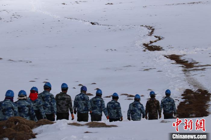 圖為“三區(qū)兩州”玉樹地區(qū)電網(wǎng)工程建設稱多110千伏輸變電二回線路施工現(xiàn)場,施工人員正在鏟除厚重的積雪,為前往施工現(xiàn)場開路。徐曉韜 攝