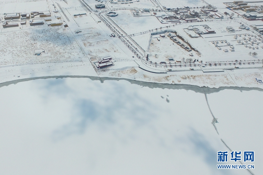 白雪覆蓋下的青海湖(4月7日攝)。新華網(wǎng) 潘彬彬 攝