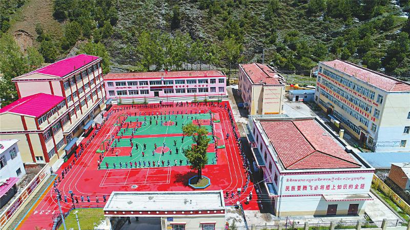 漂亮的若爾蓋縣降扎鄉(xiāng)中心校。(若爾蓋縣委宣傳部供圖)
