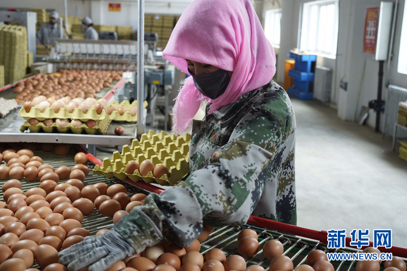 在德青源金雞扶貧產(chǎn)業(yè)園內(nèi),工人正在挑揀雞蛋。新華社記者 朱藝琳 攝