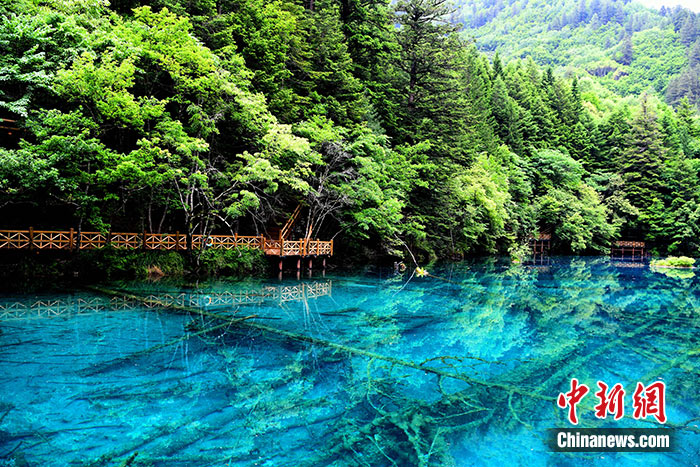 圖為6月19日拍攝的九寨溝風(fēng)光。中新社記者 安源 攝