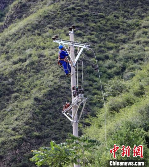 在丹巴與小金縣交界處的太平橋鄉(xiāng)黑風(fēng)頂村電力恢復(fù)施工現(xiàn)場,35名電力搶險人員正忙著架設(shè)輸電線路,該段新架設(shè)的10千伏輸電線路全長1.5公里,共7跨電桿,是此次電力恢復(fù)最關(guān)鍵的工程。山洪泥石流災(zāi)害造成丹巴縣城至半扇門輸電線路嚴(yán)重?fù)p毀,短時間內(nèi)難以恢復(fù),經(jīng)過協(xié)調(diào),指揮部決定從阿壩州小金縣取得電源,以便及時解決半扇門、太平橋兩個鄉(xiāng)鎮(zhèn)老百姓的用電問題?!坝型謴?fù)堰塞湖以上26個行政村,兩個鄉(xiāng)鎮(zhèn)和四所學(xué)校,兩個衛(wèi)生院2500多戶萬余人的生產(chǎn)生活用電?!眹W(wǎng)丹巴縣供電公司搶險人員韓聲壽表示。