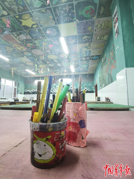 滿掌鄉(xiāng)小學(xué)有專門的音樂(lè)課和美術(shù)課教室,音樂(lè)教室里有鋼琴和電子琴,還有個(gè)沒(méi)人彈過(guò)的古箏。美術(shù)教室布置得極熱鬧,天花板上都有老師和學(xué)生們的涂鴉。