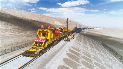 為了如期推進項目建設(shè),目前,格庫鐵路(新疆段)施工人員正以每天鋪軌1.5公里的速度向前推進,預計7月份將完成格庫鐵路(新疆段)全線鋪軌施工任務(wù),10月份具備全線開通條件。