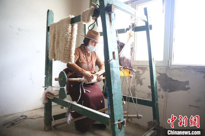 圖為曲麻萊縣牧民措毛正在制作牛絨用品。胡貴龍 攝
