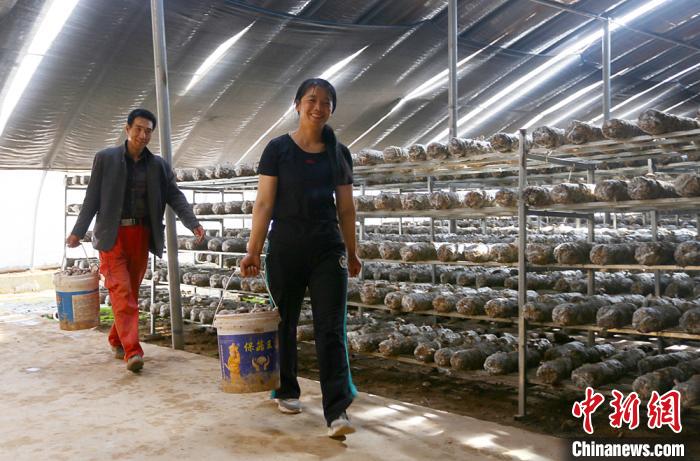 “香菇夫妻”王世芳和丈夫萬銀成正采摘香菇。高展 攝