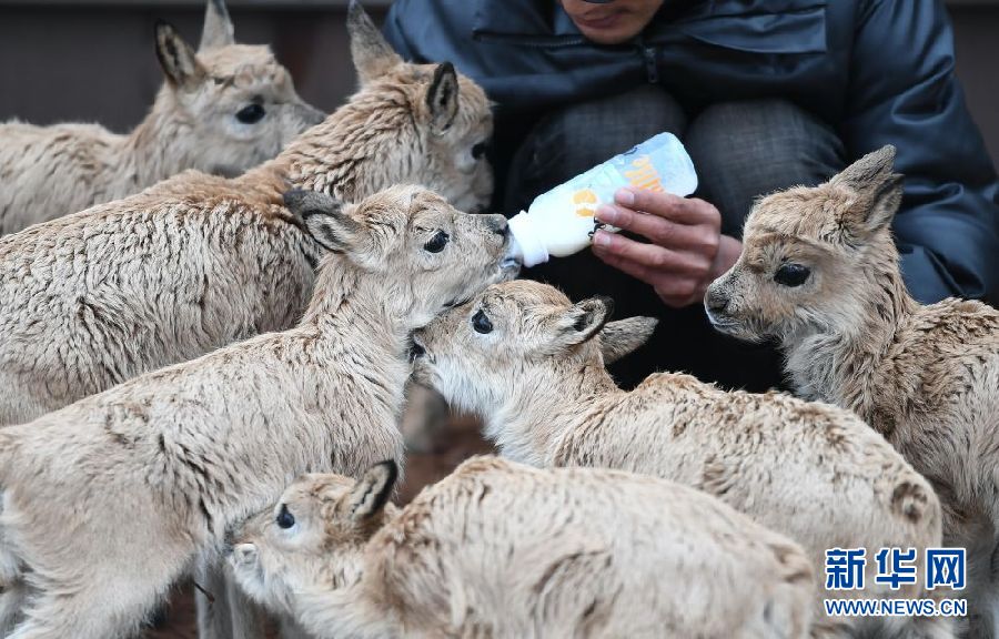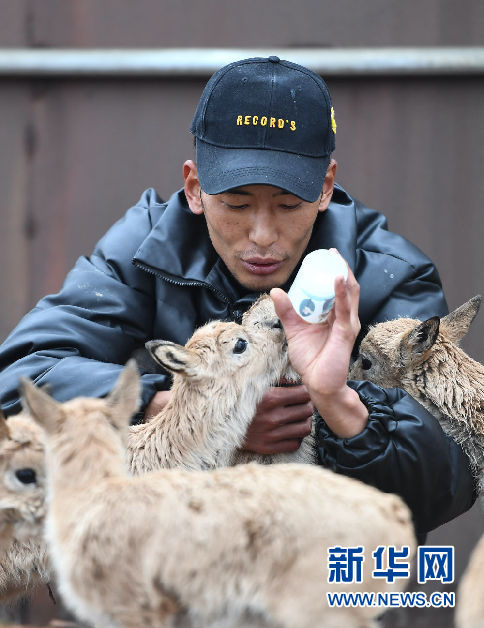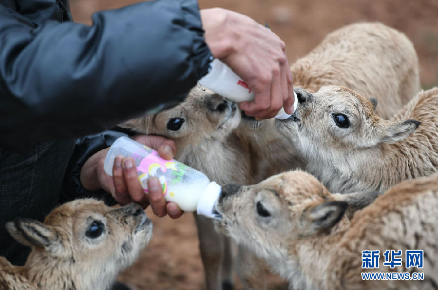為讓11只藏羚羊幼仔盡快適應(yīng)環(huán)境、健康成長,卓乃湖保護(hù)站安排專人,在特定區(qū)域?qū)ζ溥M(jìn)行喂養(yǎng)。記者在卓乃湖保護(hù)站看到,每日早、中、晚,巡山隊(duì)員才文多杰會(huì)按時(shí)給小藏羚羊喂奶,每只小藏羚羊都有自己的“專用”奶瓶。