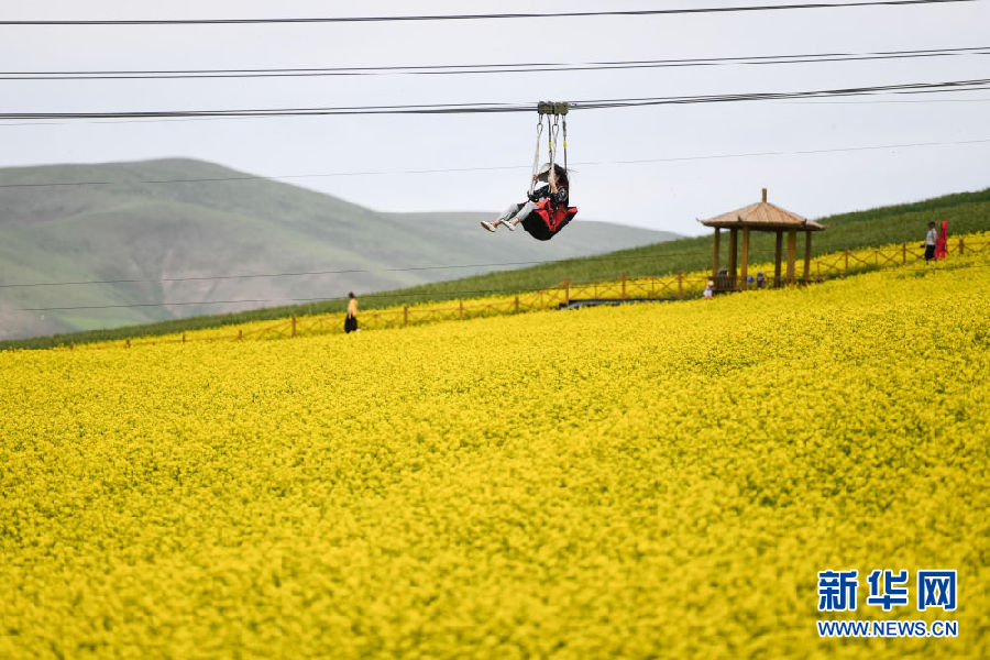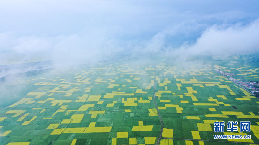 時下正值高原油菜花競相綻放的季節(jié),在青海省海北藏族自治州門源回族自治縣,金黃色的油菜花在高原藍(lán)天和云霧映襯下形成一幅壯麗畫卷,吸引游客前來觀賞。
