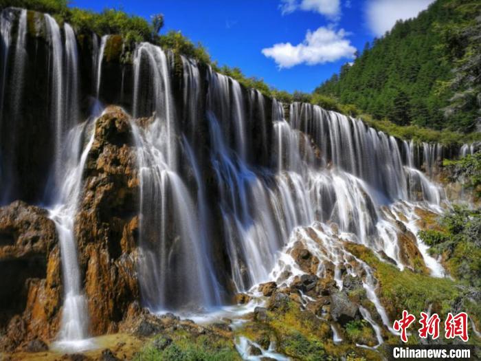 九寨溝諾日朗瀑布再現(xiàn)往昔壯觀美景。(中國地震局公共服務(wù)司、四川省地震局 供圖)