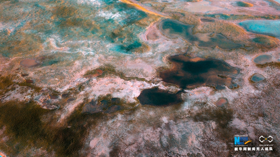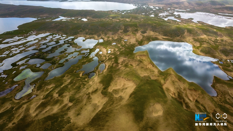 素有“千湖之縣”的瑪多縣境內的湖泊。(航拍圖新華網 宋忠勇 攝)