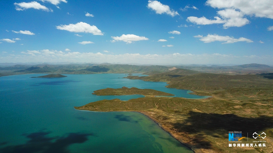 素有“千湖之縣”的瑪多縣境內的湖泊。(航拍圖)新華網 宋忠勇 攝