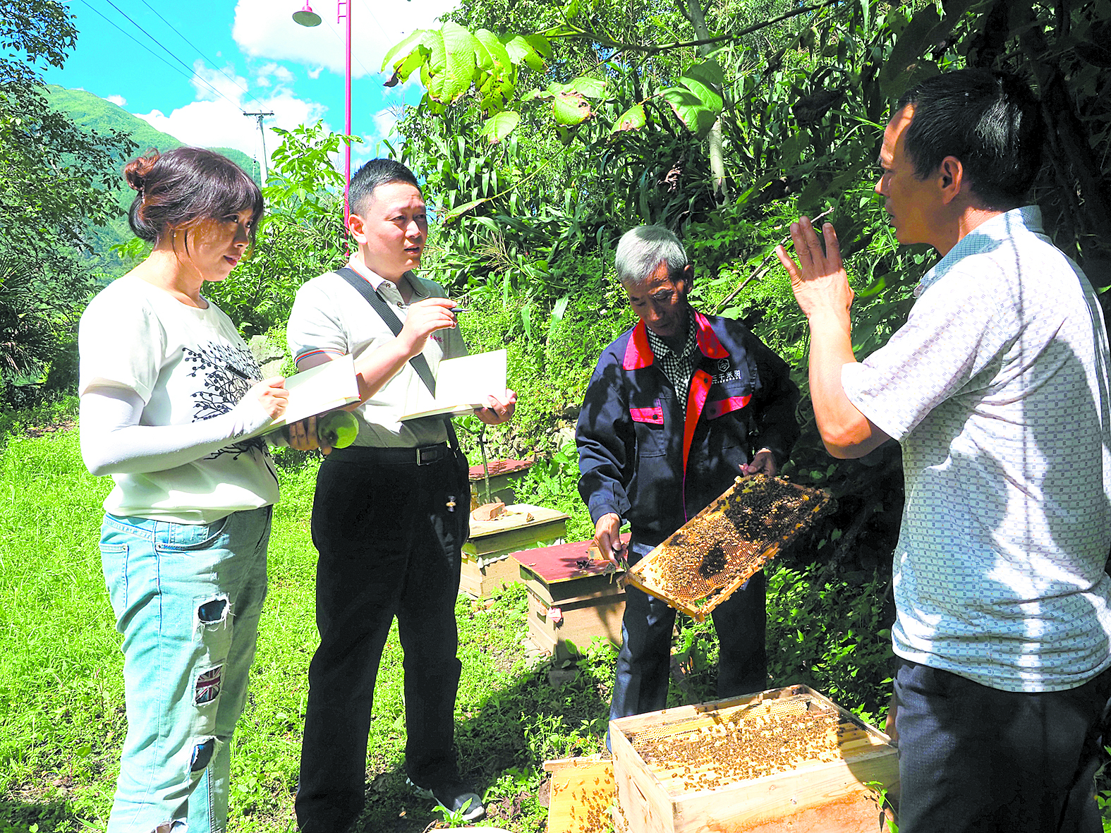回轉身去,蒲江縣對口援助瀘定工作隊隊長吳孟賢正和張洪彬攀談著今年的蜜蜂增收情況?!捌呀h新增財政幫扶資金277萬元作為獎補資金,激勵成都三千米甜蜂業(yè)有限公司落戶瀘定發(fā)展的‘貢嘎中蜂’養(yǎng)殖支援項目,現(xiàn)在已經累計發(fā)放貢嘎中蜂7500余群,幫助全縣38個貧困村發(fā)展村級集體經濟,示范帶動800戶以上貧困戶增收?!眳敲腺t滔滔不絕如數(shù)家珍,身旁飛過的貢嘎中蜂也似乎成了他和其他對口支援隊員的化身,他們從舒適的成都平原來到高原瀘定,懷揣堅定的信念,用行動肩負起責任與擔當,他們將藏族同胞的利益裝在心里、舉過頭頂,排除千難萬險,因地制宜推動當?shù)匕l(fā)展;跋山涉水,進居入戶,訪貧問苦,為藏族同胞送上溫暖與關懷……他們用心血和汗水書寫著一個大大的“愛”字,甜到藏族同胞的心坎上。