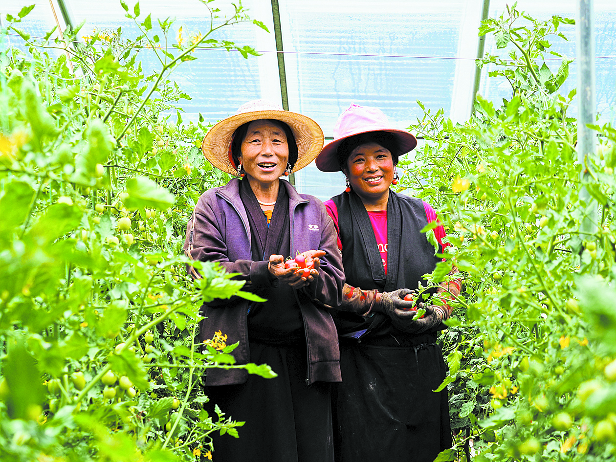 “嘗嘗這個(gè)小番茄,是不是很甜?”隨意摘下一個(gè)紅寶石般的小番茄,村民達(dá)娃卓瑪笑著遞給記者。