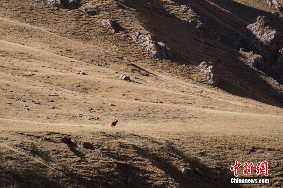 10月15日,位于青海省雜多縣扎青鄉(xiāng)的瀾滄江源頭如油畫般的風(fēng)景。圖為國家二級保護動物馬鹿。中新社記者 蘇丹 攝