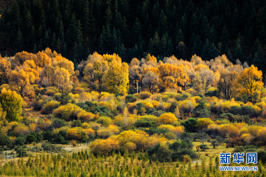郁郁蔥蔥的樹(shù)木已經(jīng)由綠變黃。新華網(wǎng) 蘇金元 攝